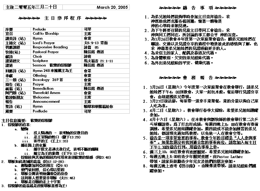 Sermon Recording - Mar. 20, 2005
