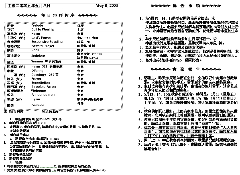 Sermon Recording Not Available           Old Bulletins and Sermons