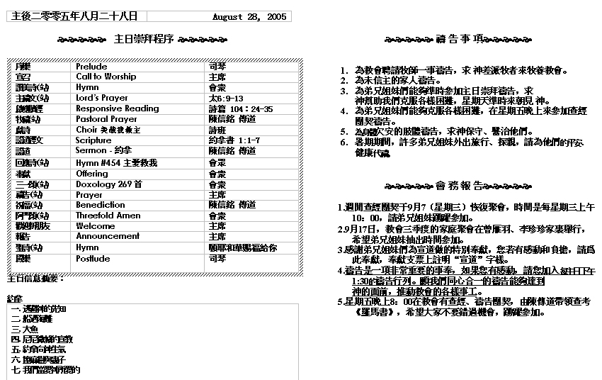 Sermon Recording - Aug. 28, 2005