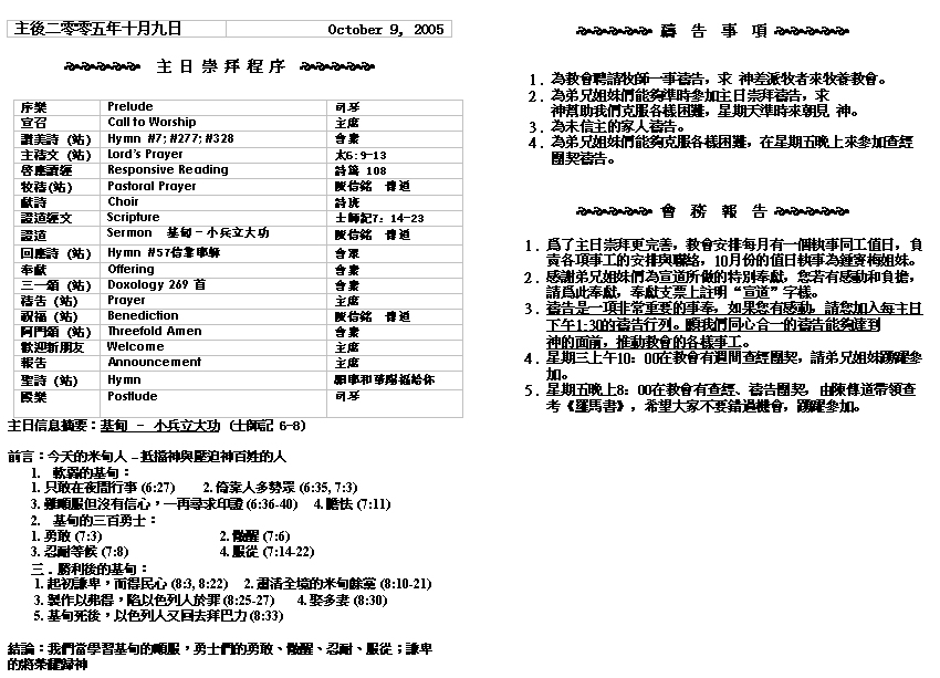 Sermon Recording - Oct. 09, 2005
