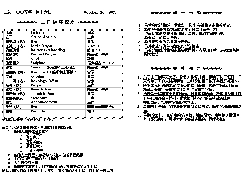 Sermon Recording - Oct. 16, 2005