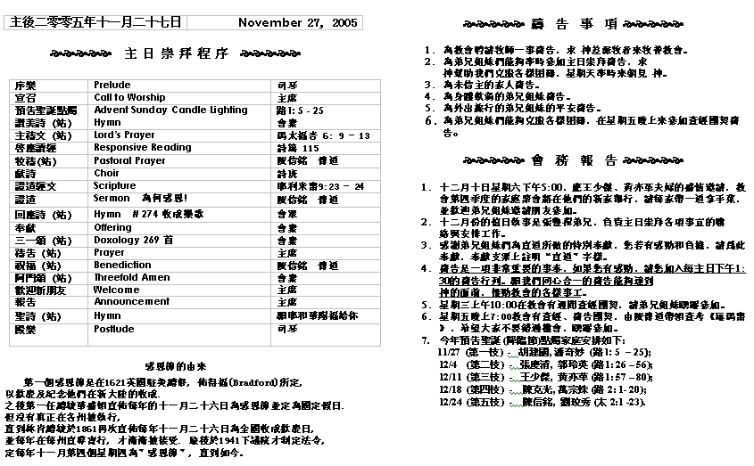 Sermon Recording - Nov. 27, 2005