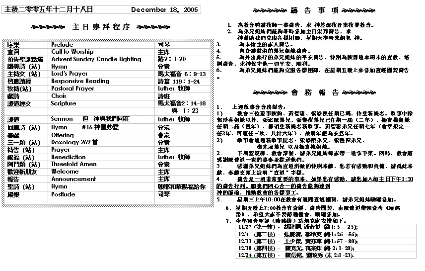 Sermon Recording - Dec. 18, 2005
