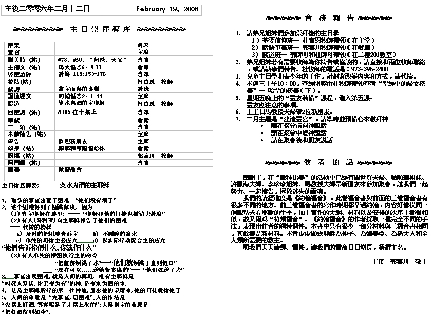 Sunday worship starts at 10AM, followed by sunday school at 11:30AM and luncheon at 12:30PM. If you would like to know Jesus, plese join us and change your life!.