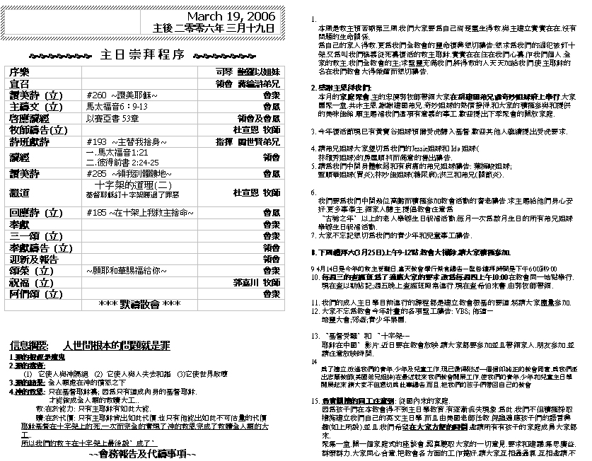 Sermon Recording - Mar. 19, 2006