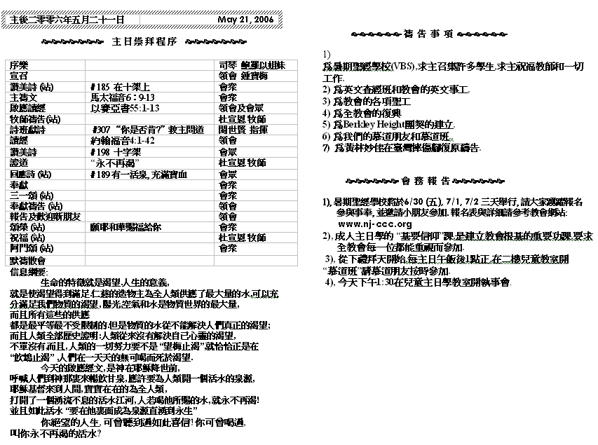Sermon Recording - May 21, 2006