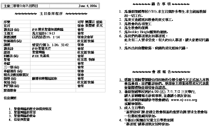 Sunday worship starts at 10AM, followed by sunday school at 11:30AM and luncheon at 12:30PM. If you would like to know Jesus, plese join us and change your life!.