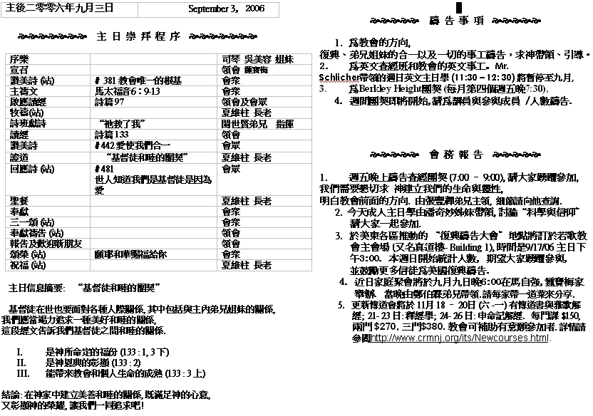 Sermon Recording - Sept. 03, 2006 Old Bulletins and Sermons |