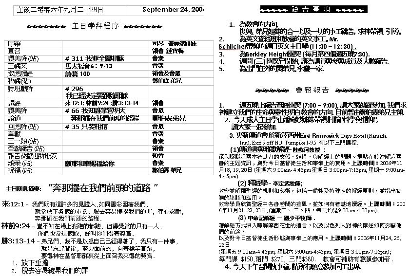 Sermon Recording - Sept. 24, 2006 Old Bulletins and Sermons |