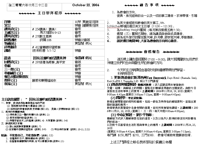 Sermon Recording - Oct. 22, 2006