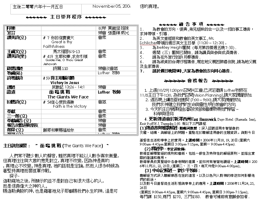 Sermon Recording - Nov. 05, 2006