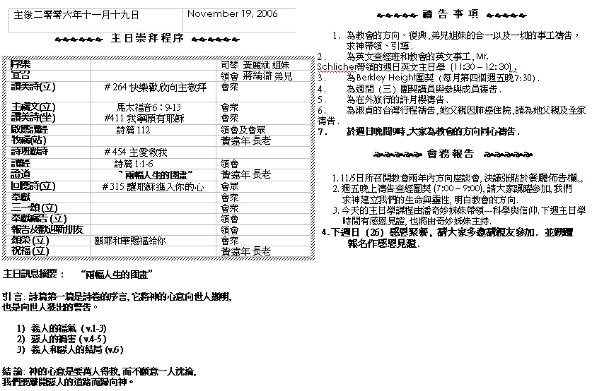 Sermon Recording - Nov. 19, 2006