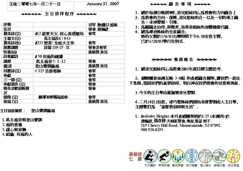 Sermon Recording - Jan. 21, 2007