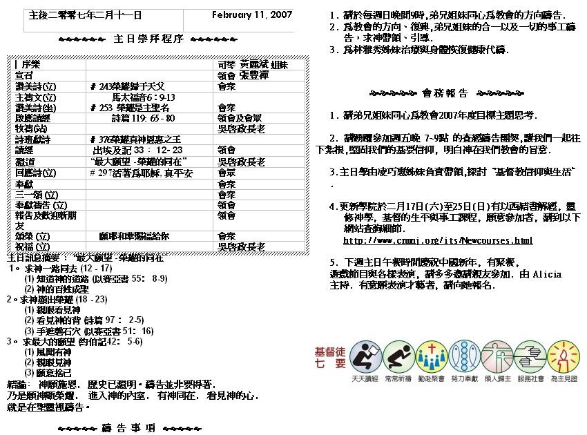 Sermon Recording - Feb. 11, 2007