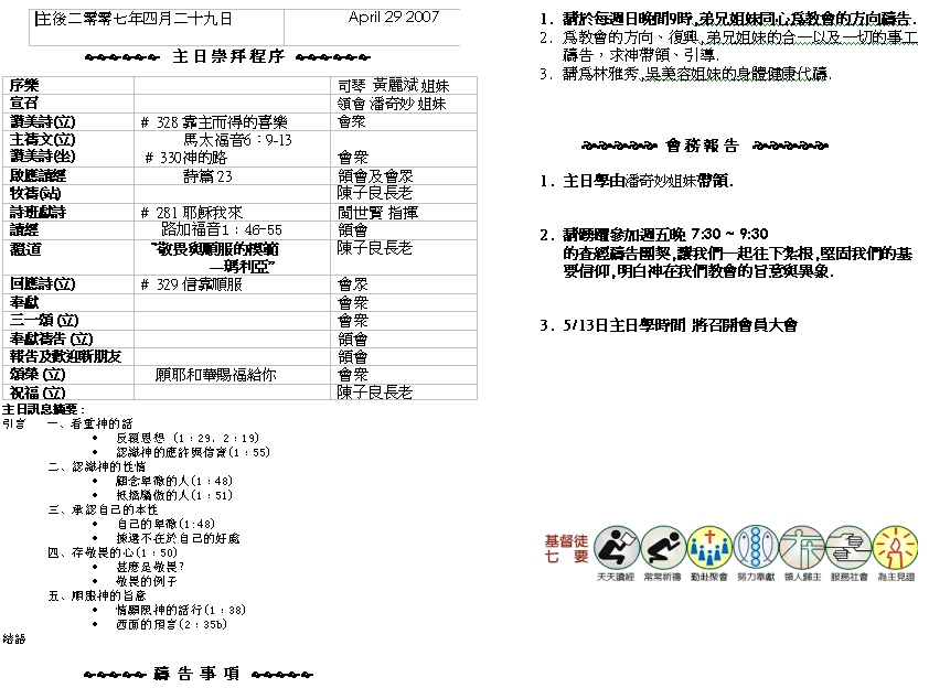 Sermon Recording - Apr. 29, 2007