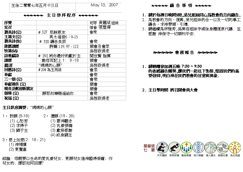 Sermon Recording - May 13, 2007