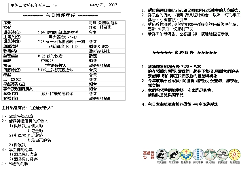 Sermon Recording - May 20, 2007