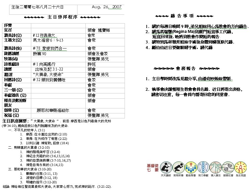 Sermon Recording - Aug. 26, 2007