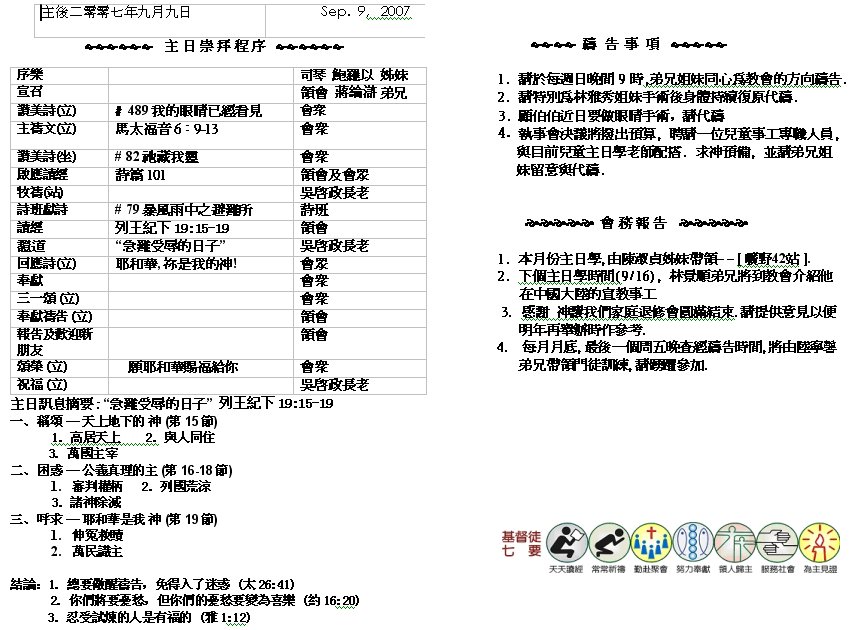Sermon Recording - Sept. 09, 2007 Old Bulletins and Sermons |