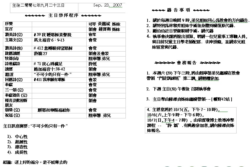 Sermon Recording - Sept. 23, 2007 Old Bulletins and Sermons |