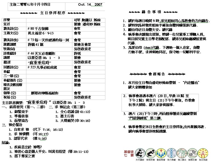 Sermon Recording - Oct. 14, 2007