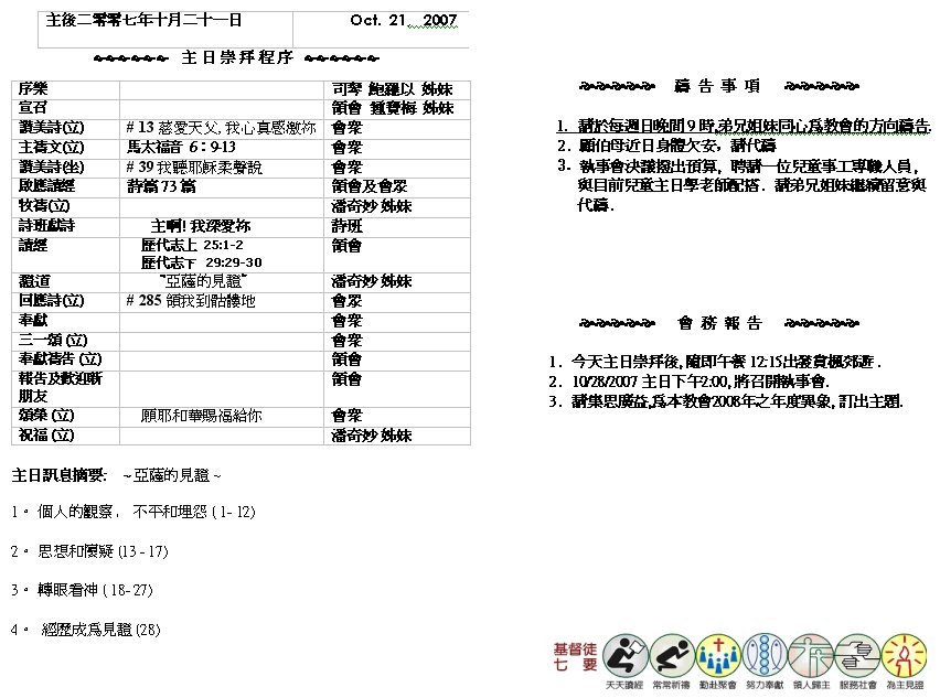 Sermon Recording - Oct. 21, 2007