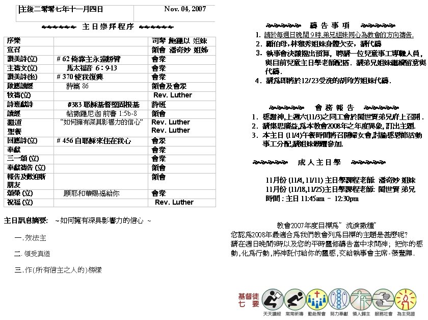 Sermon Recording - Nov. 04, 2007