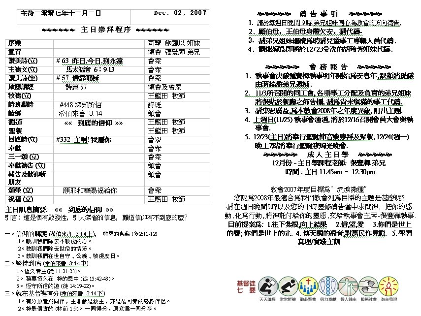 Sermon Recording - Dec. 02, 2007