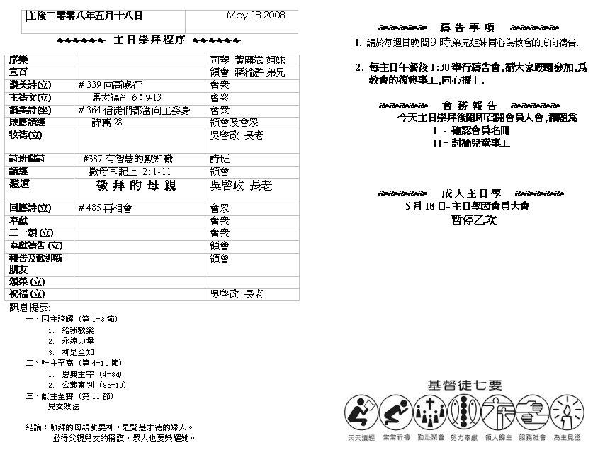Sermon Recording - May 18, 2008