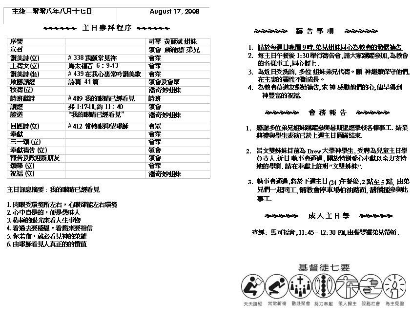 Sermon Recording - Aug. 17, 2008