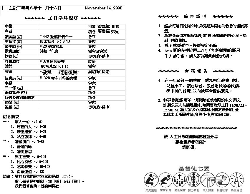 Sermon Recording - Nov. 16, 2008