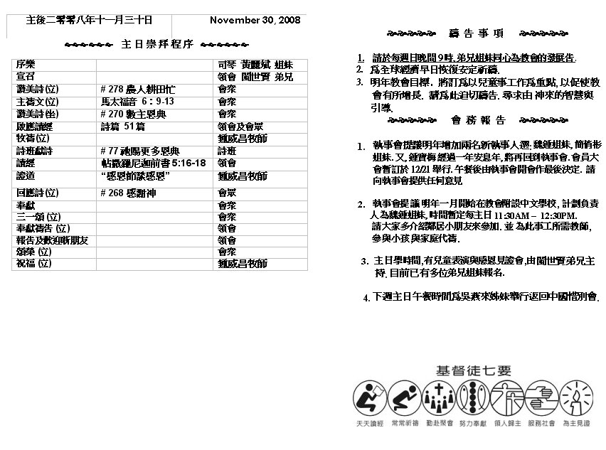Sunday worship starts at 10AM, followed by sunday school at 11:30AM and luncheon at 12:30PM. If you would like to know Jesus, plese join us and change your life!.