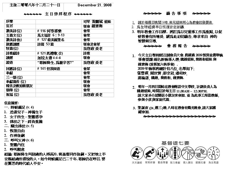 Sermon Recording - Dec. 21, 2008