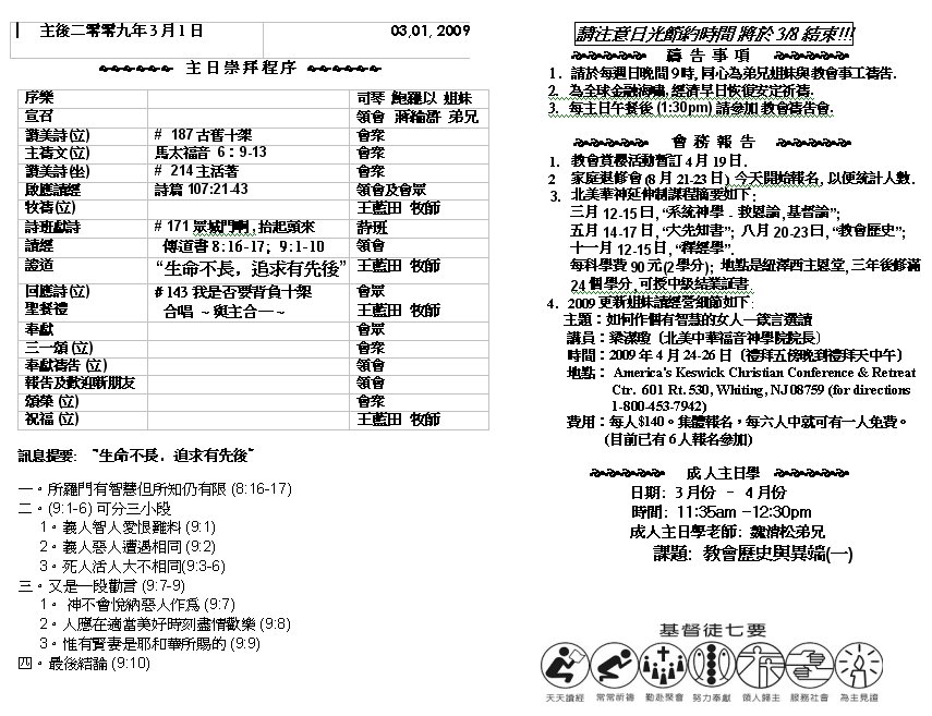 Sermon Recording - Mar 01, 2009