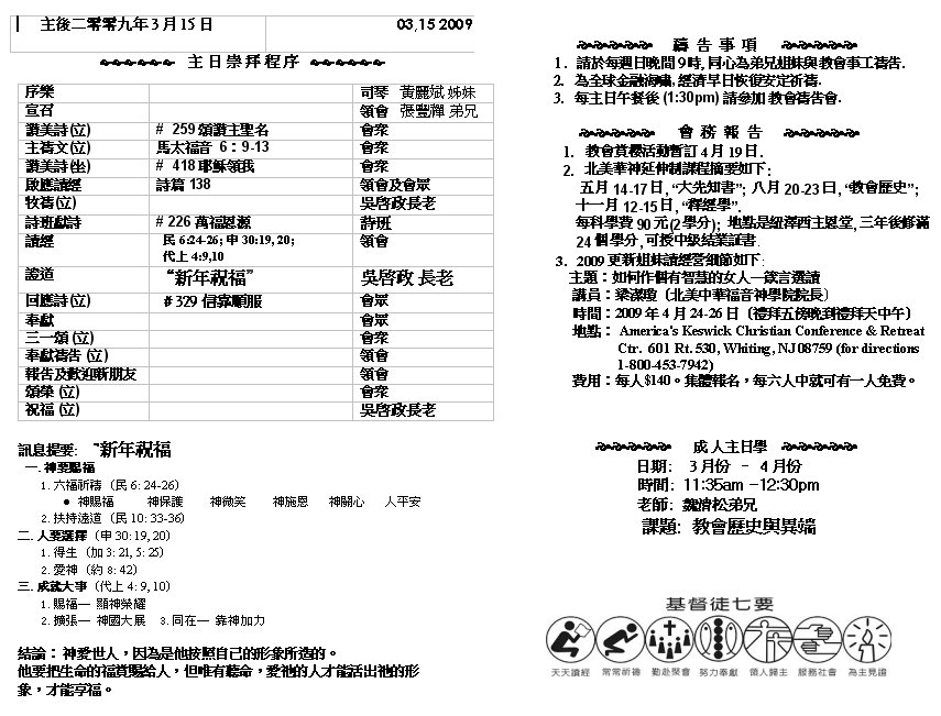 Sunday worship starts at 10AM, followed by sunday school at 11:30AM and luncheon at 12:30PM. If you would like to know Jesus, plese join us and change your life!.