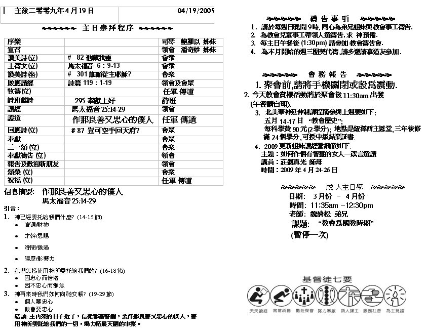 Sermon Recording - Apr 19, 2009