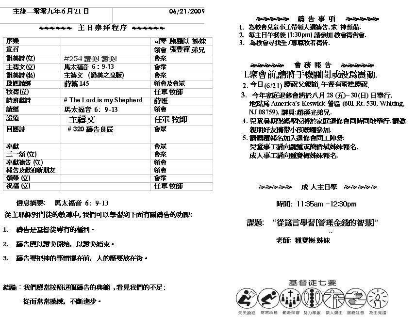 Sunday worship starts at 10AM, followed by sunday school at 11:30AM and luncheon at 12:30PM. If you would like to know Jesus, plese join us and change your life!.