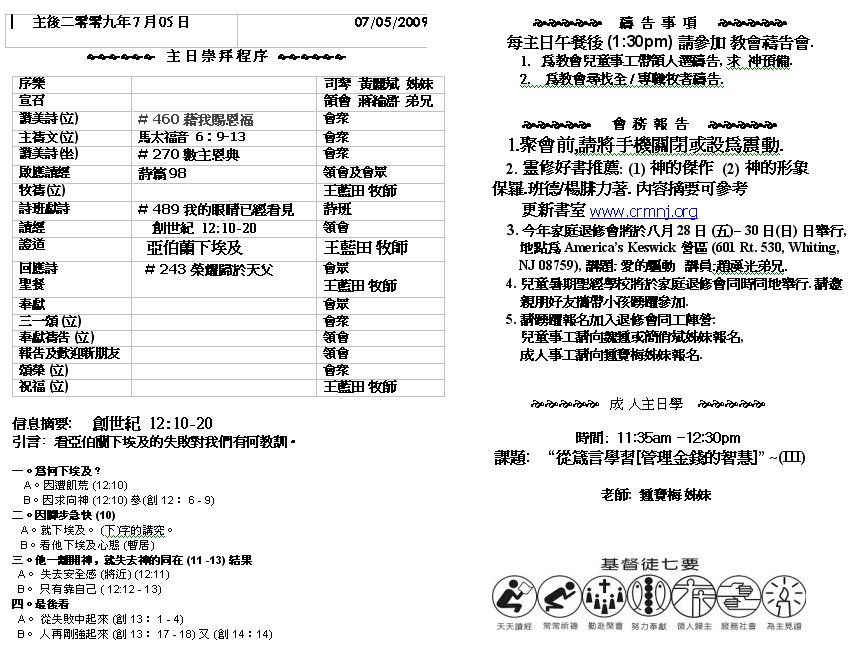 Sermon Recording - Jul 05, 2009