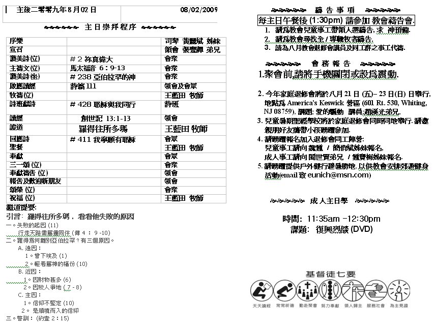 Sermon Recording - Aug 02, 2009