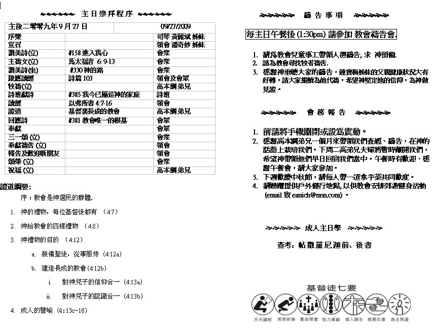 Sermon Recording - Sept. 27, 2009 Old Bulletins and Sermons |