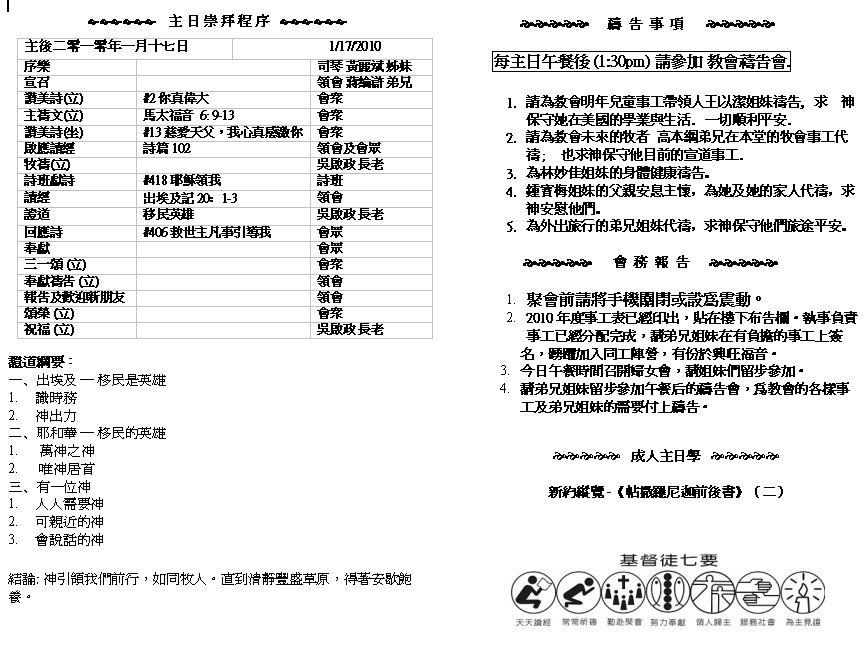 Sermon Recording - Jan. 17, 2010