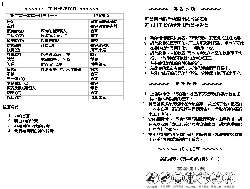 Sunday worship starts at 10AM, followed by sunday school at 11:30AM and luncheon at 12:30PM. If you would like to know Jesus, plese join us and change your life!.