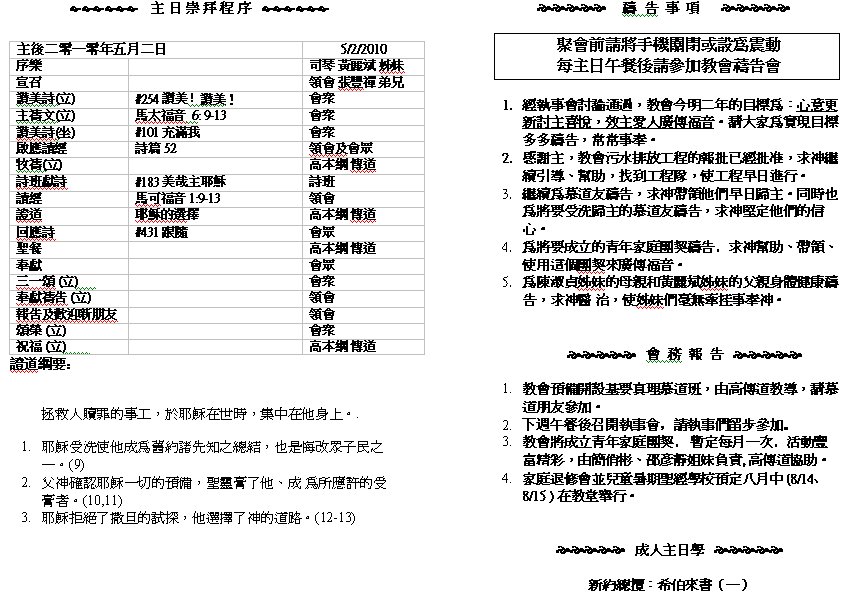 Sermon Recording - May 02, 2010
