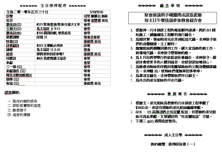 Sermon Recording - May 30, 2010