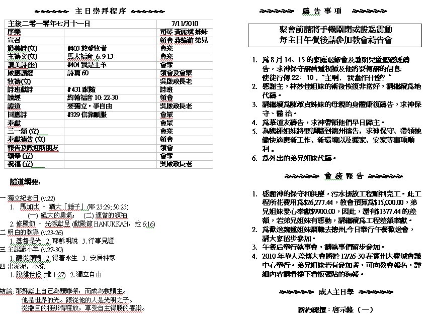 Sermon Recording - July 11, 2010