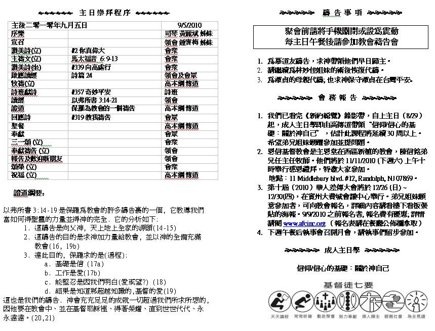 Sermon Recording - Sept. 05, 2010 Old Bulletins and Sermons |