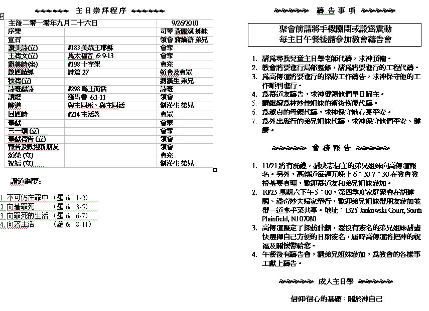 Sermon Recording - Sept. 26, 2010 Old Bulletins and Sermons |