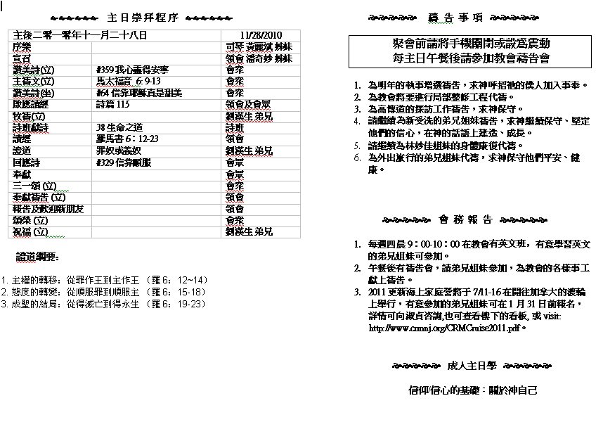 Sermon Recording - Nov. 28, 2010