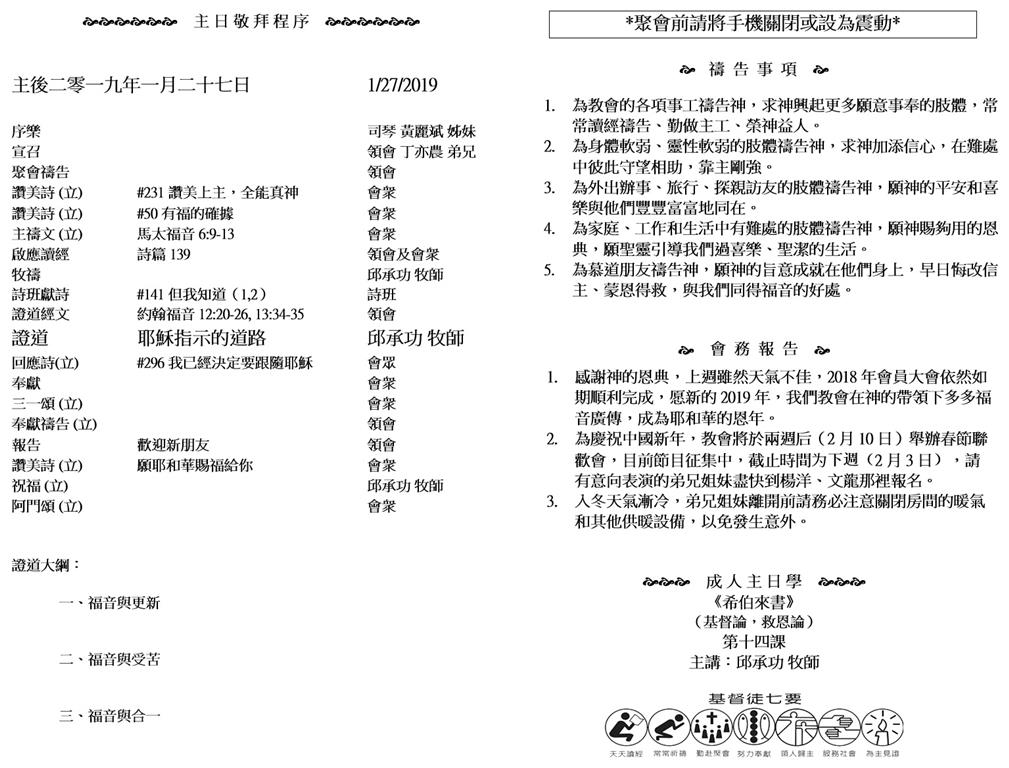 Sunday worship starts at 10AM, followed by sunday school at 11:30AM and luncheon at 12:30PM. If you would like to know Jesus, plese join us and change your life!.