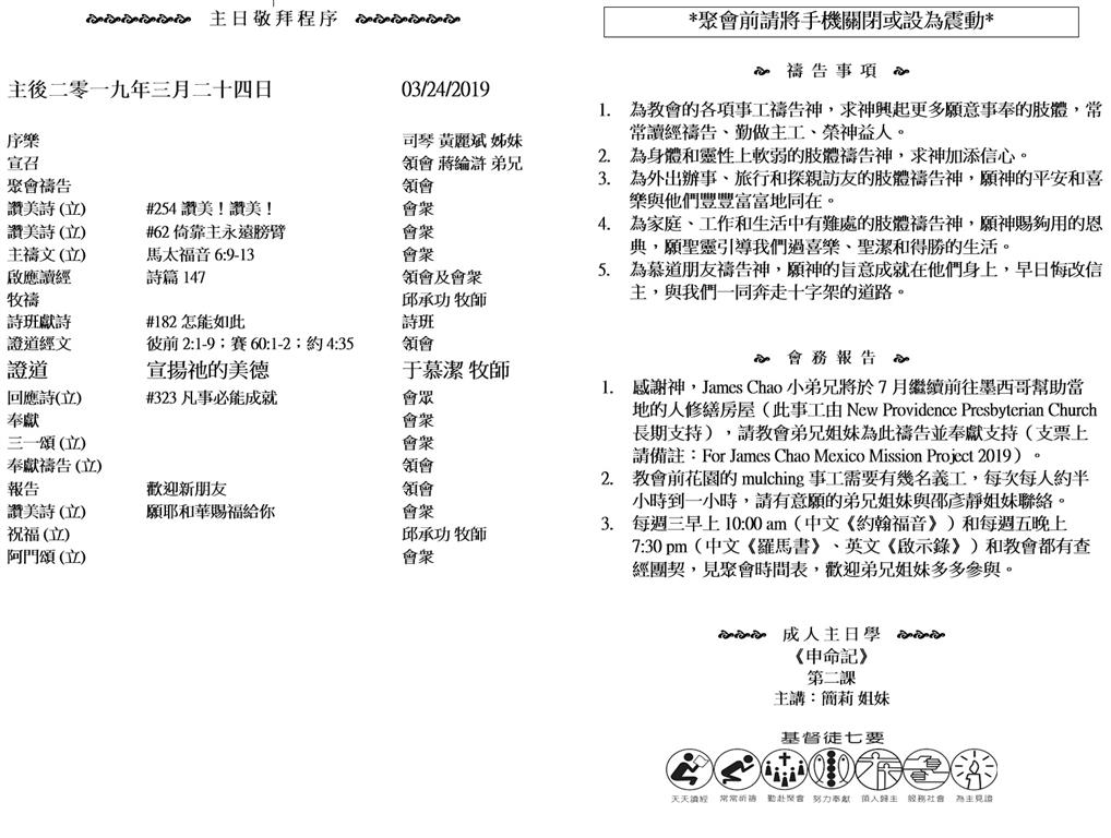 Sunday worship starts at 10AM, followed by sunday school at 11:30AM and luncheon at 12:30PM. If you would like to know Jesus, plese join us and change your life!.